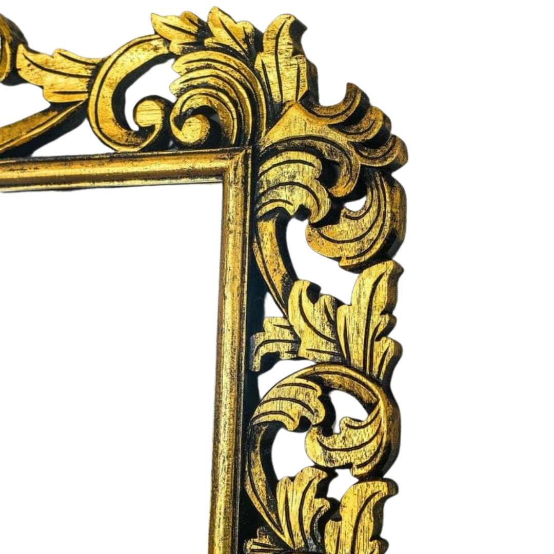 This premium designer mirror features an elegant vintage-style carved frame with a rich antique gold finish. The detailed design enhances the beauty of any interior, making it a perfect decorative and functional piece. Its full-length size offers a clear and wide reflection, ideal for bedrooms or dressing areas. Built with strong materials, it ensures durability while adding a luxurious and classic touch to your space.