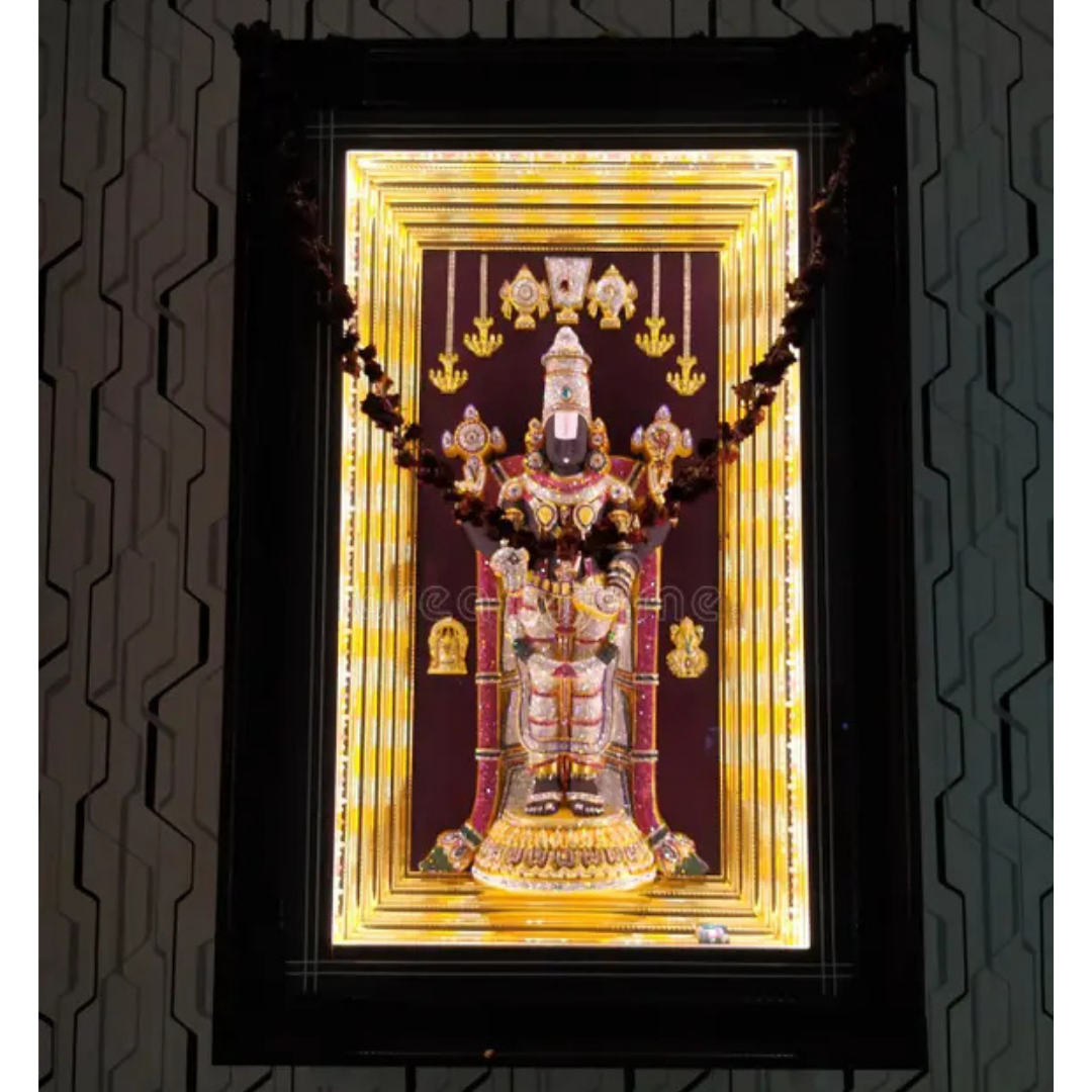 This Balaji LED frame showcases a richly detailed temple-style design enhanced with vibrant multi-color lighting that highlights every element beautifully. The glowing illumination adds depth and creates a powerful divine presence, making it ideal for home temples and spiritual spaces. Its premium finish and intricate artwork make it a perfect choice for spiritual decor as well as meaningful gifting on special occasions.