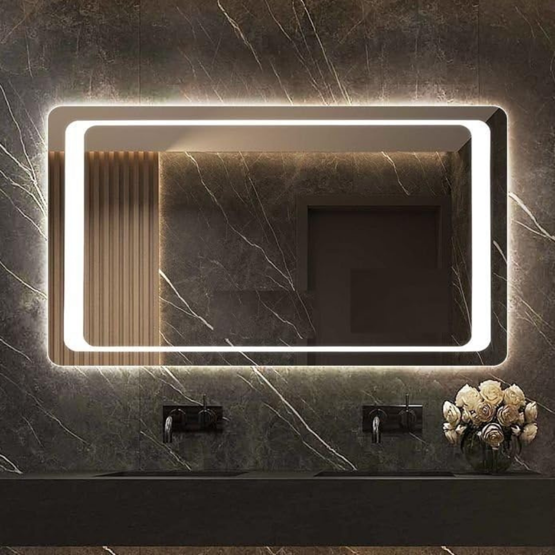 This stylish rectangular LED mirror features dual-tone ambient lighting that enhances the overall look of modern interiors. Designed with soft backlit illumination, it provides clear visibility for grooming while creating a warm and relaxing atmosphere. The sleek shape fits perfectly in bathrooms or vanity areas. Built with high-quality materials, it ensures durability and energy efficiency, making it a perfect blend of functionality and contemporary design.